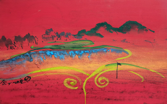 ▲ 미련 지나온 홀에 대한 미련이 몰려온다, 물에 비친 풍경 속에 그리움을 던져버리고 왔더니…. 2019년 작. 김영화 화백