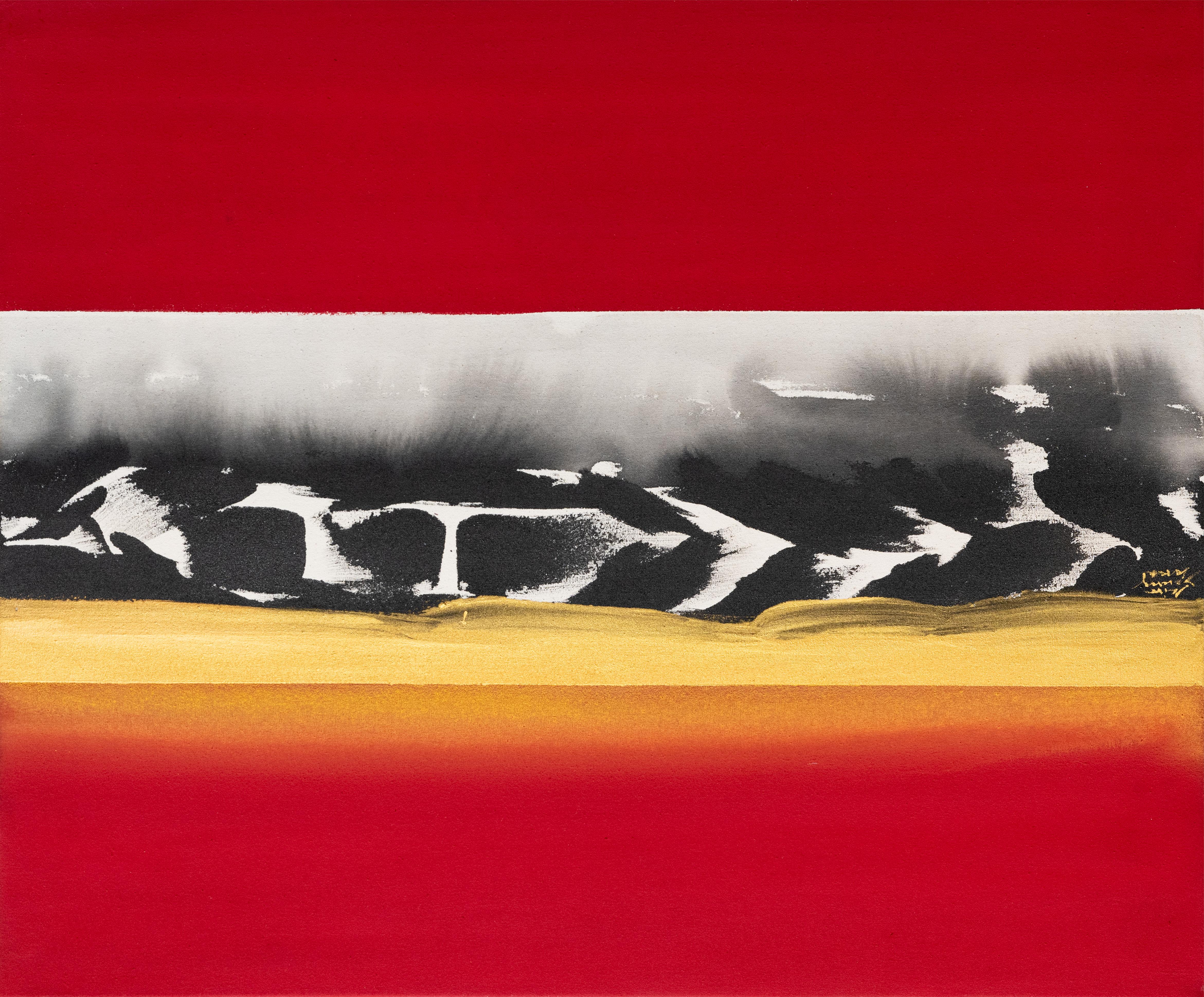 These paintings may appear to contain abstract symbols from contemporary art, but they encapsulate the philosophy of ancient Eastern art. She seeks to portray what she captures in the world of meditation, going beyond the visible surface. The inner waves emerging from deep subconscious boundaries are rooted in her realization that the universe resides within her. Her intuition and feelings guide her brush on the canvas, akin to tracing lines automatically. With a lifelong dedication to Eastern art's spirit and lines, she continuously expresses her concepts using rich ink and golden touches, and vivid, deep colors. Her artwork embodies the essence of meditation itself, guiding both creators and viewers from meditation to creation and inspiring meditation.