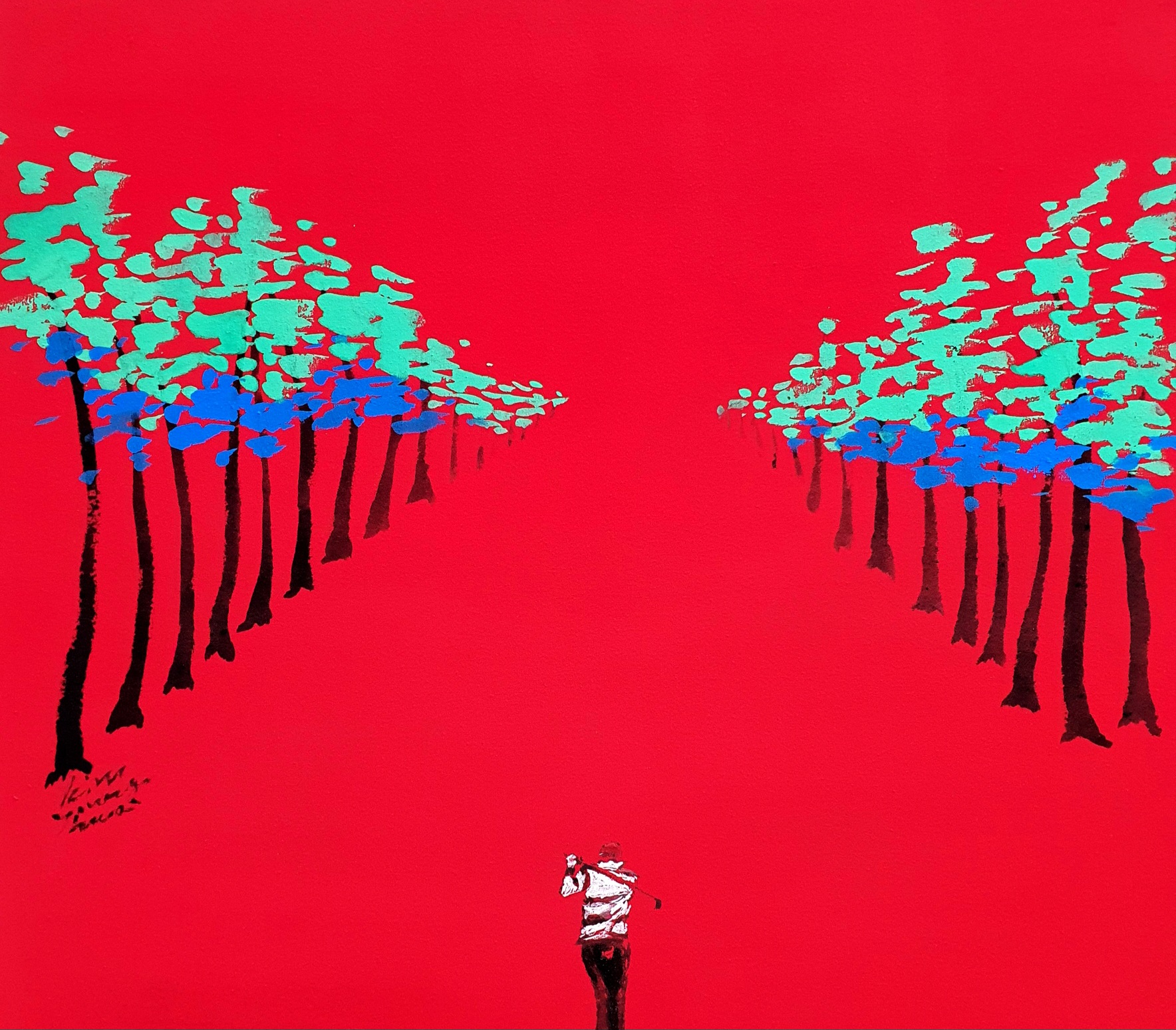 Kim Young-hwa is an artist who is pioneering new horizons in contemporary East Asian art through her golf-themed paintings. The distinctive feature of her work is the fusion of Eastern ink painting (水墨) with Western abstraction. East Asian painting, even when depicting landscapes, doesn't merely capture the scenery itself but contains a conceptual world within. Moreover, Eastern philosophy emphasizes the harmony of opposites, and in Kim Young-hwa's work, this is reflected in portraying femininity through fields (여체) and revealing masculinity through pine trees, aligning with Eastern worldviews. In this sense, she refers to her art as modern East Asian painting, achieving a harmonious blend of these two realms.