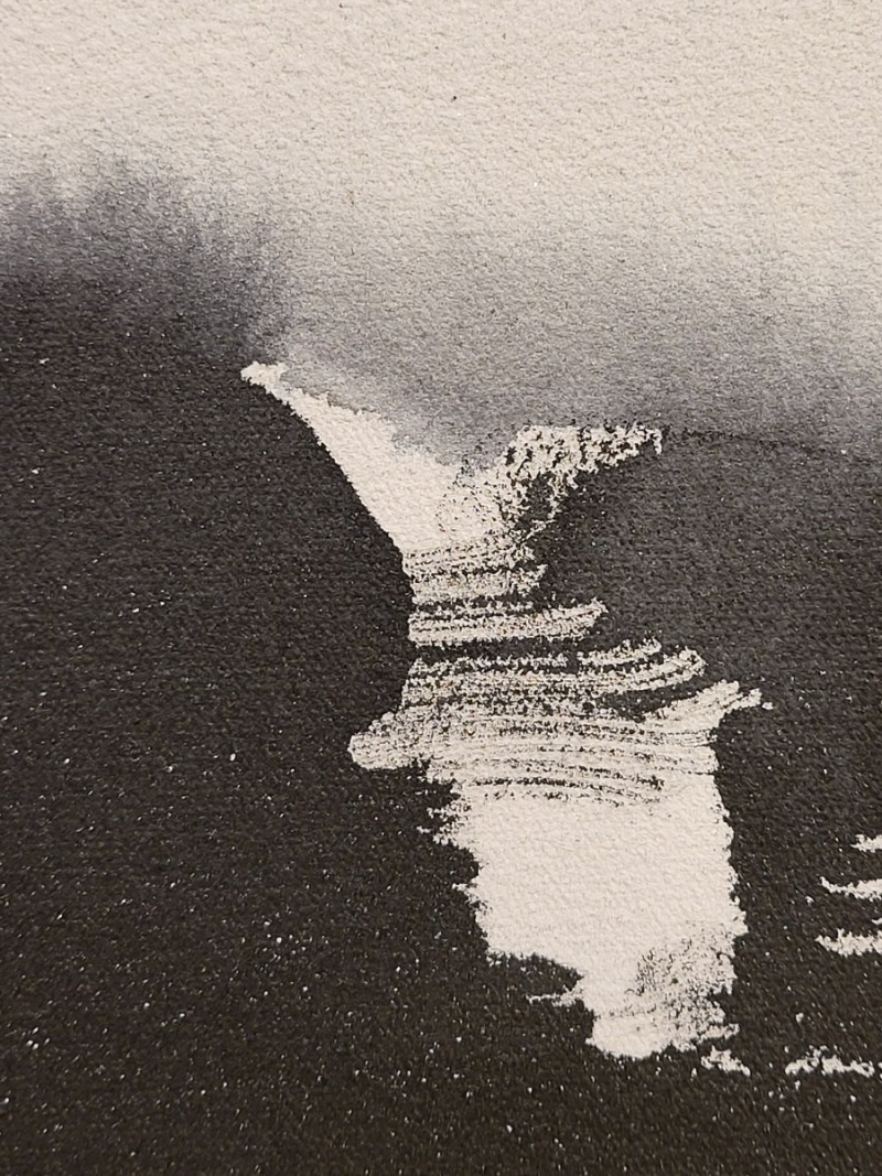 She, who has been researching and pursuing the spirit and Zen of the East all her life, is constantly expressing her ideas with dark ink, golden touches, and intense and deep colors. Her work is literally meditation itself. Coming out of meditation, creating in meditation, and bringing meditation to the viewer.