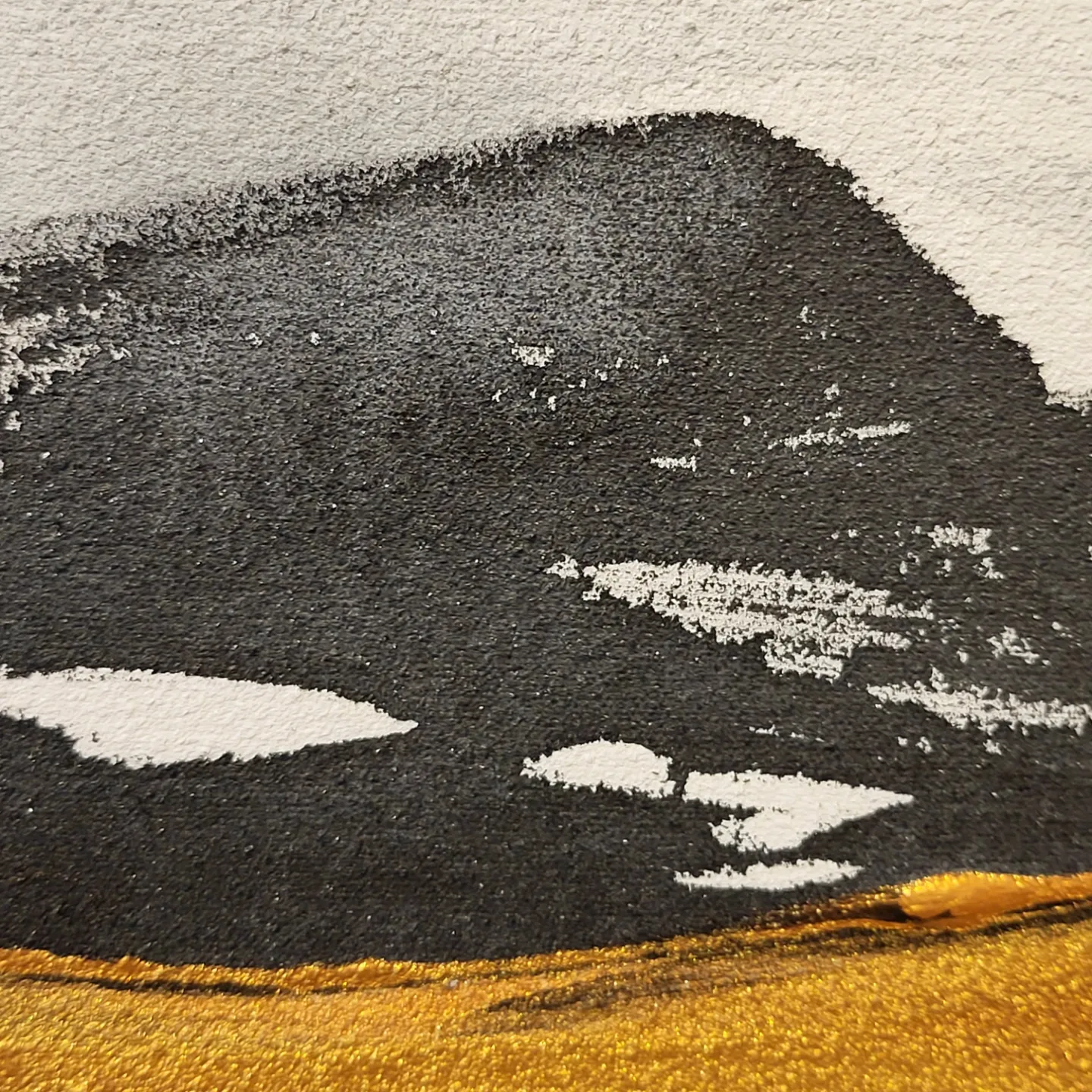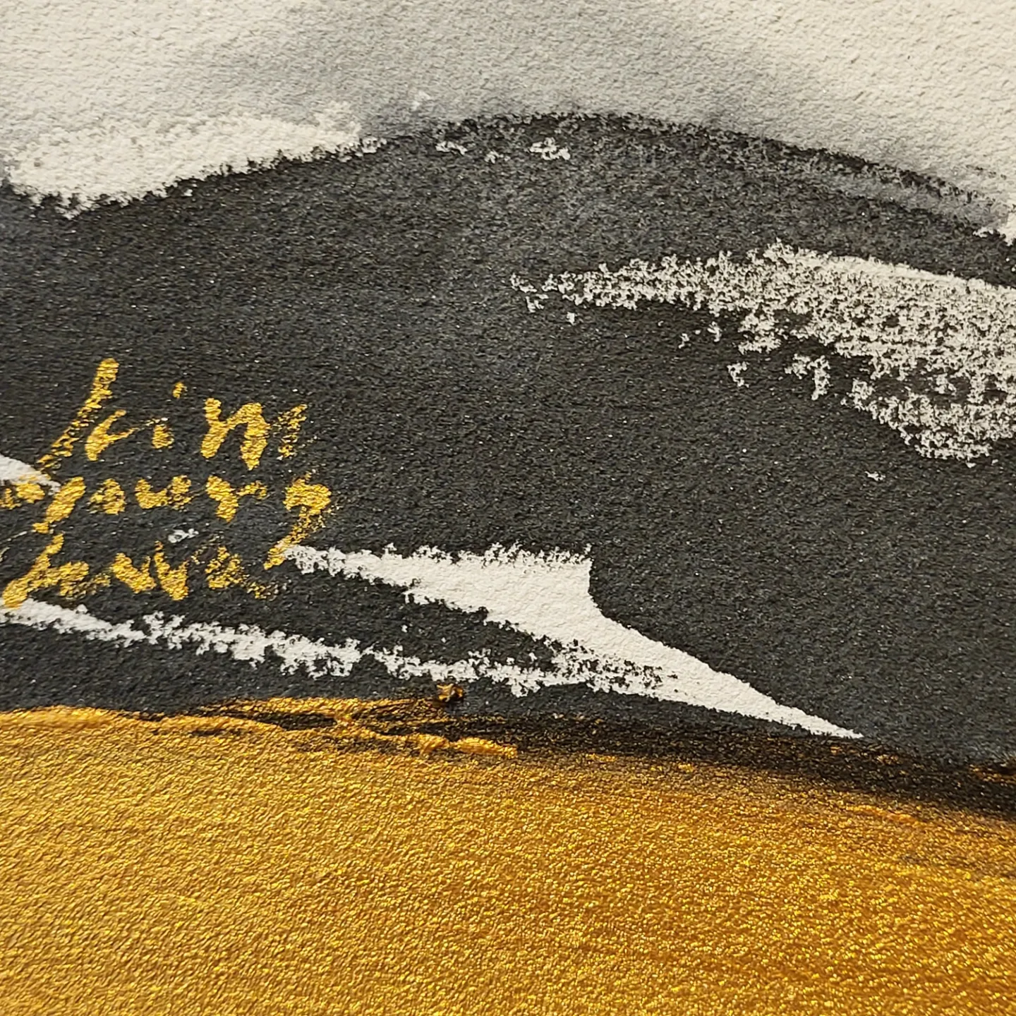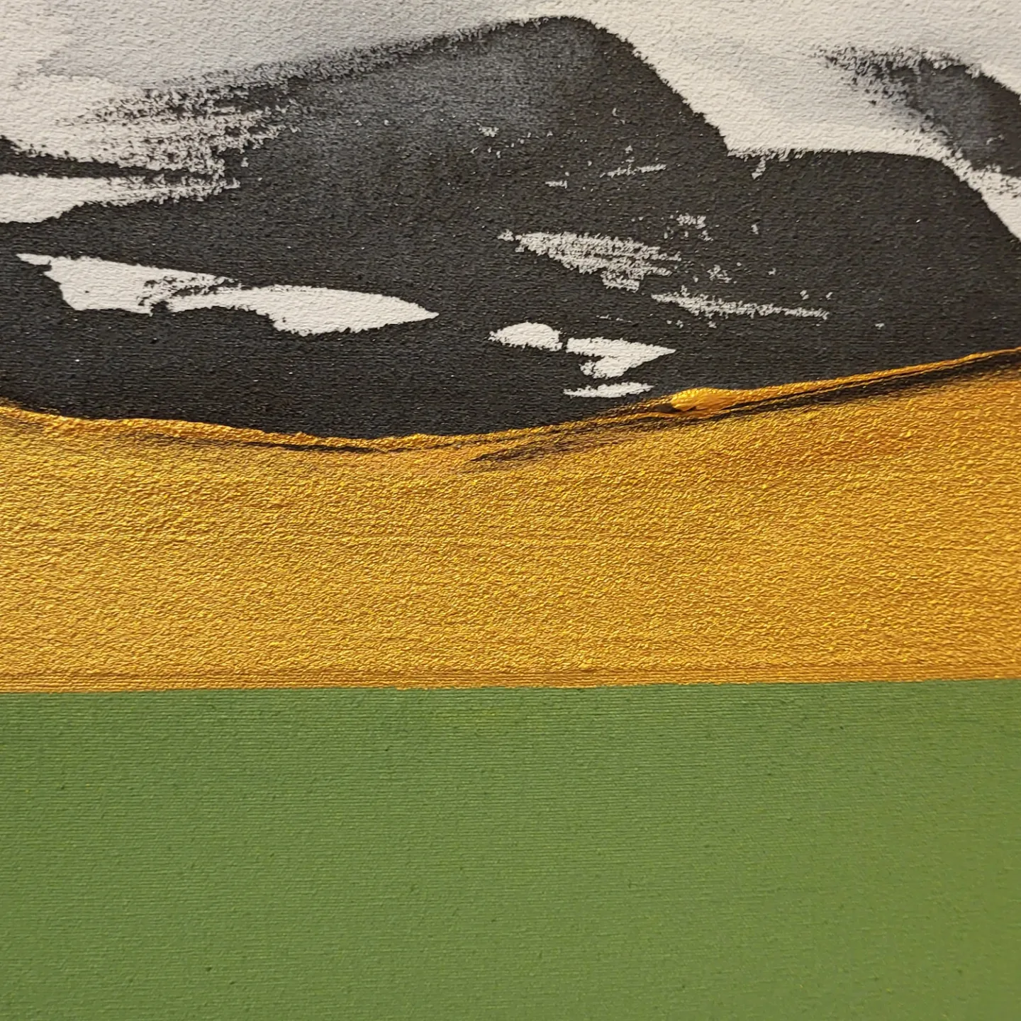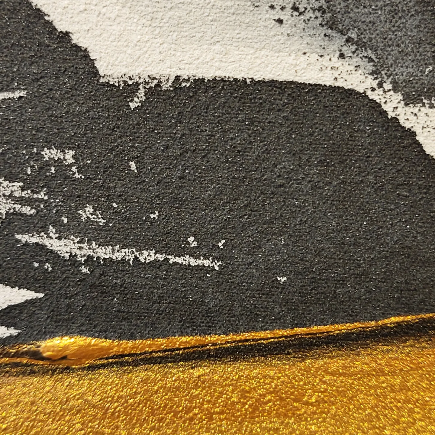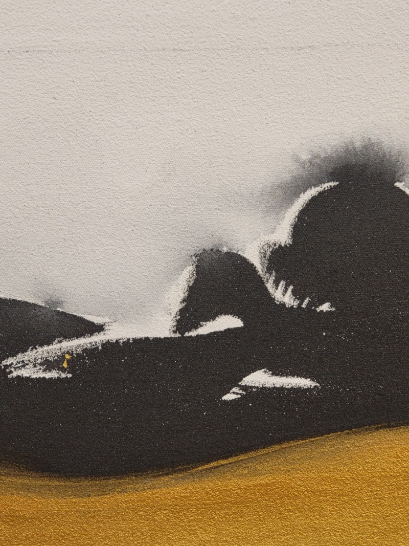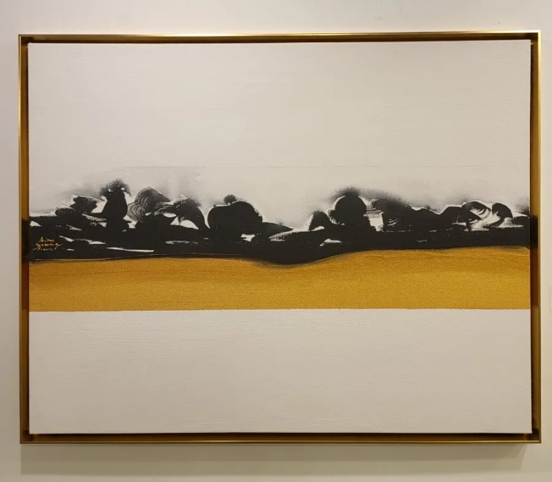 The non-figurative work of color, ink, and gold powder on the three-division plane added a sense of stability to her paintings. The number 3 means perfection. It reduces the stress of choice, creates balance and creates a sense of rhythm.