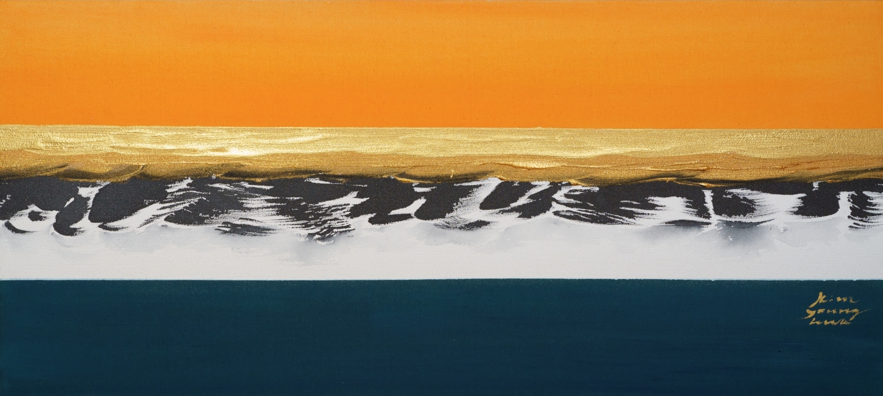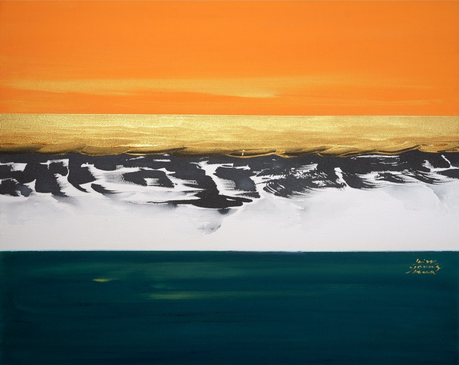 In 2019, amidst the pandemic, I created a new series called “Magic Moment.” This series expanded beyond golf paintings to capture the harmony of Eastern and Western aesthetics. The combination of gold and black ink in my paintings conveys life, hope, and a powerful message of healing.