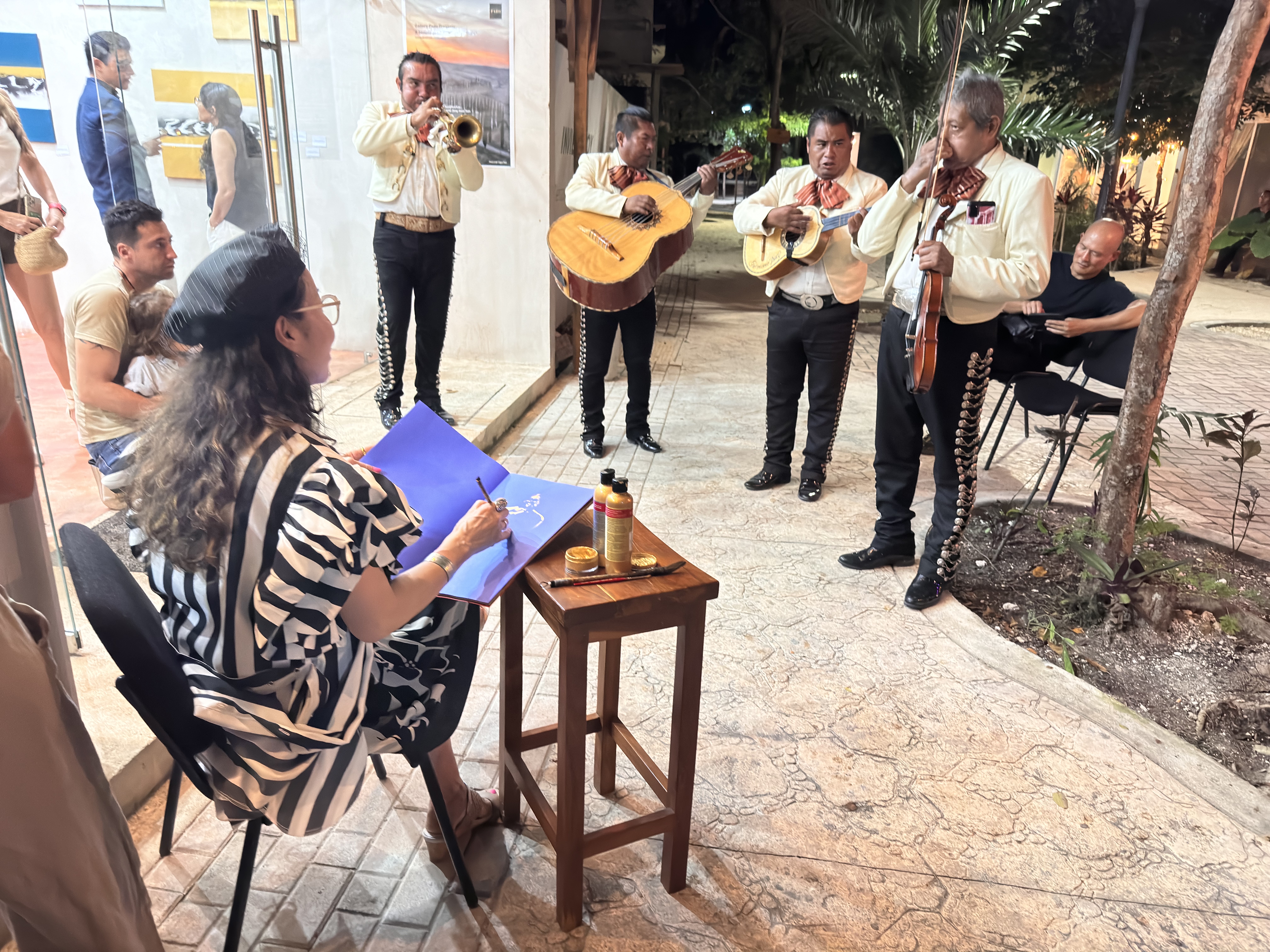 During the opening of 'The Field of Stars' exhibition on the 9th, a traditional Mexican mariachi band performed. AIGA Young-hwa Kim, on the spot, swiftly created drawings and showcased live sketching to many people, astonishing the locals. Some Mexicans were so amazed that they purchased the drawings, donating the proceeds to COINTREE. This generous act of sharing her art confirmed AIGA Young-hwa kim's role as an ambassador of art love, generously creating drawings for them."